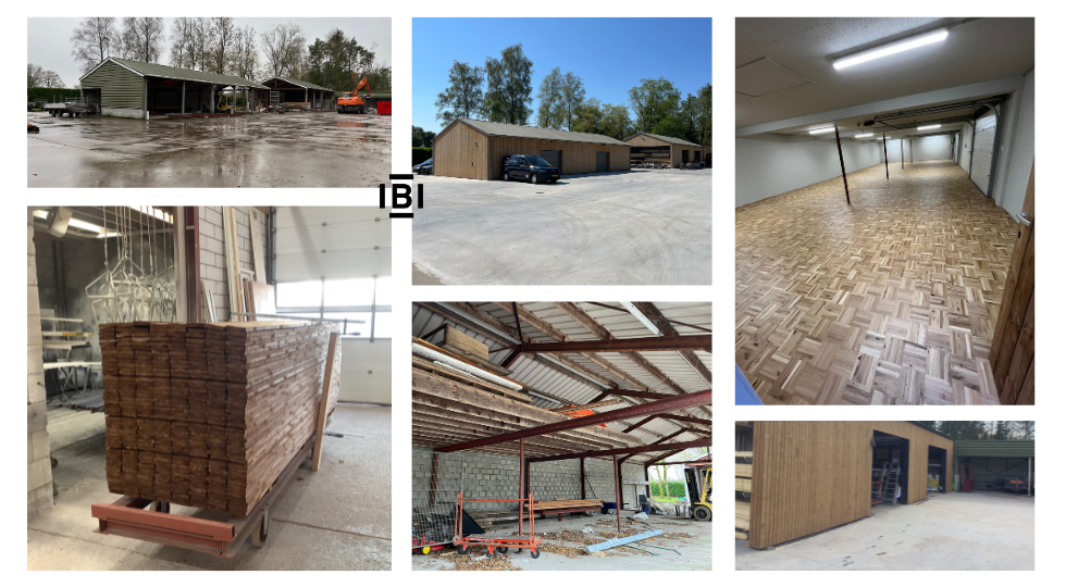 Opvallend detail in loods twee is de parketvloer van hoogwaardig eikenhout. Toch niet per se de ondergrond die je in een loods verwacht, maar eerder in een gerestaureerd woonhuis. Jaco: ‘We kozen voor eikenhout. Wat is er mooier voor een bedrijf dat veel met hout werkt?!’ Voor het isoleren van de wanden viel de keuze op houtvezelisolatie. Rick: ‘Dit als duurzamer alternatief voor steenwol. Tijdens mijn duale hbo-opleiding Bouwtechnische Bedrijfskunde bij Avans Hogeschool waren we toevallig nét bezig met een project circulariteit. Die kennis kon ik direct toepassen in de praktijk.’
