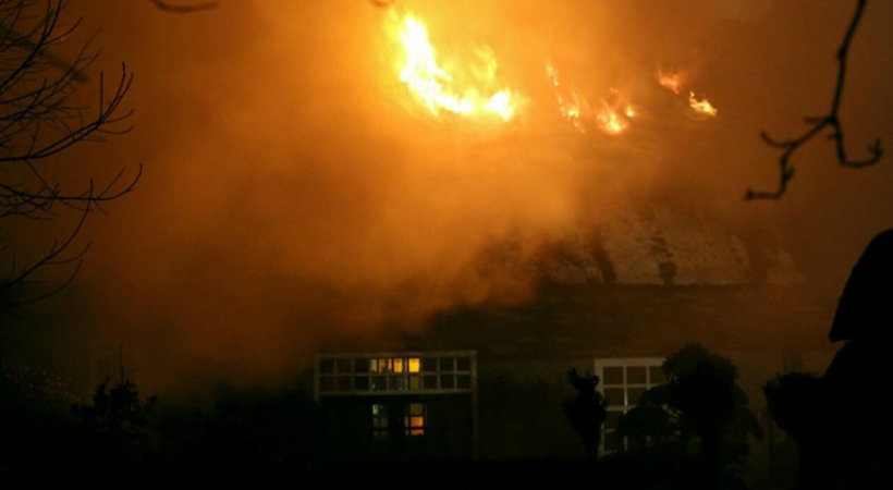 De kwaliteit van de foto van de afgebrande boerderij is niet ideaal maar duidelijk is het afgebrande dak te zien!